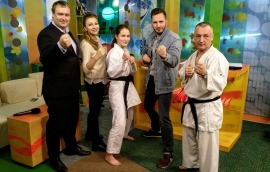 Представители КГОСО "Федерация каратэ" приняли участие в утреннем эфире программы чайники, проходившем на Костромском телеканале РУСЬ 16 ноября 2018 года