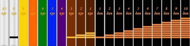 - трёх разделов (КИХОН, КАТА, КУМИТЭ) - 9 кю - 1 дан.